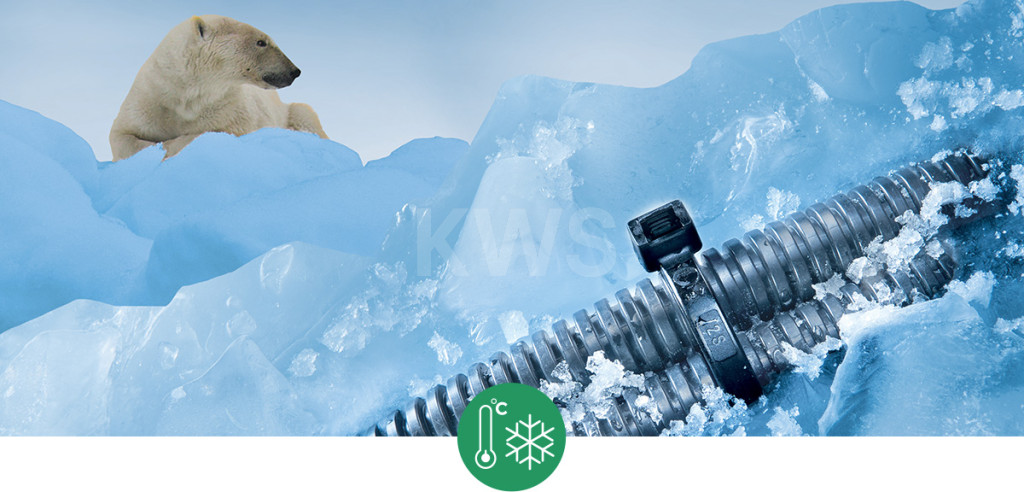 Kabelbinder für extrem kalte Einsatzbereiche mit UV-Schutz, in Industriequalität. Kältebeständigkeit: -50 °C, minimale Montagetemperatur: -40 °C. Größe: 200 x 4,5 mm.