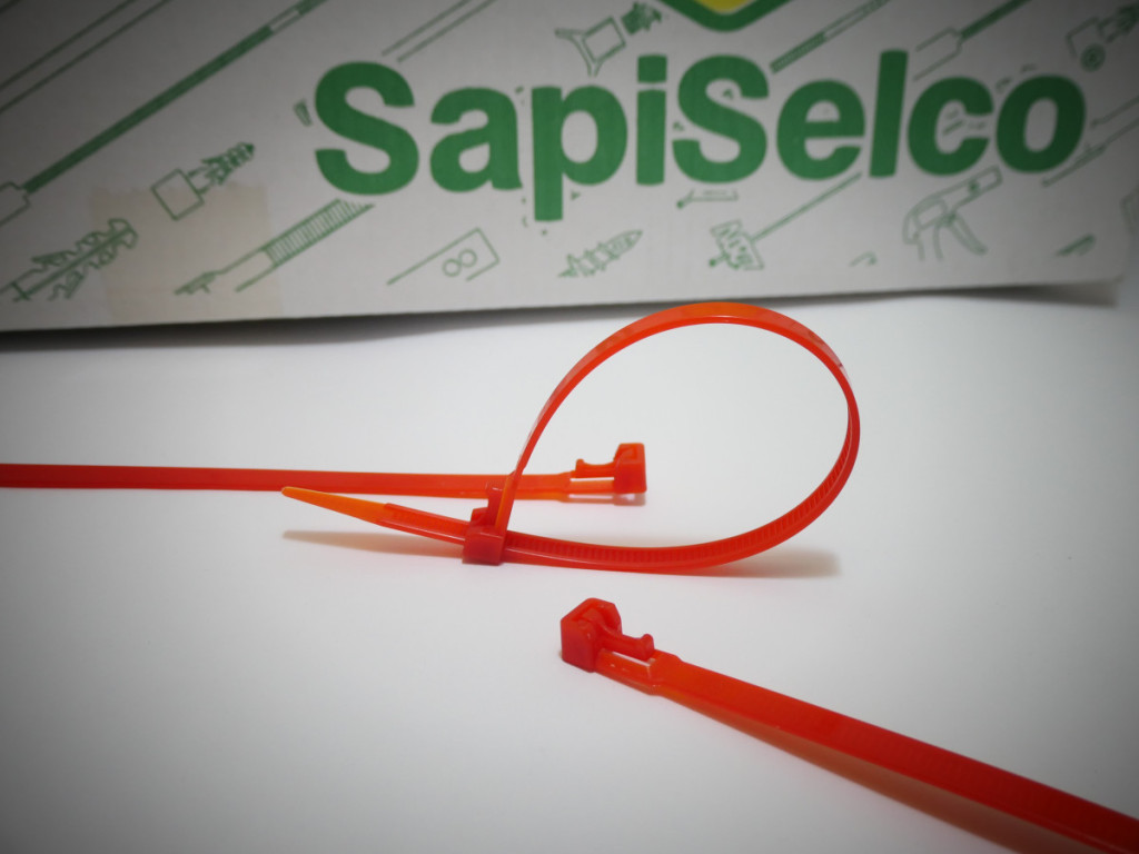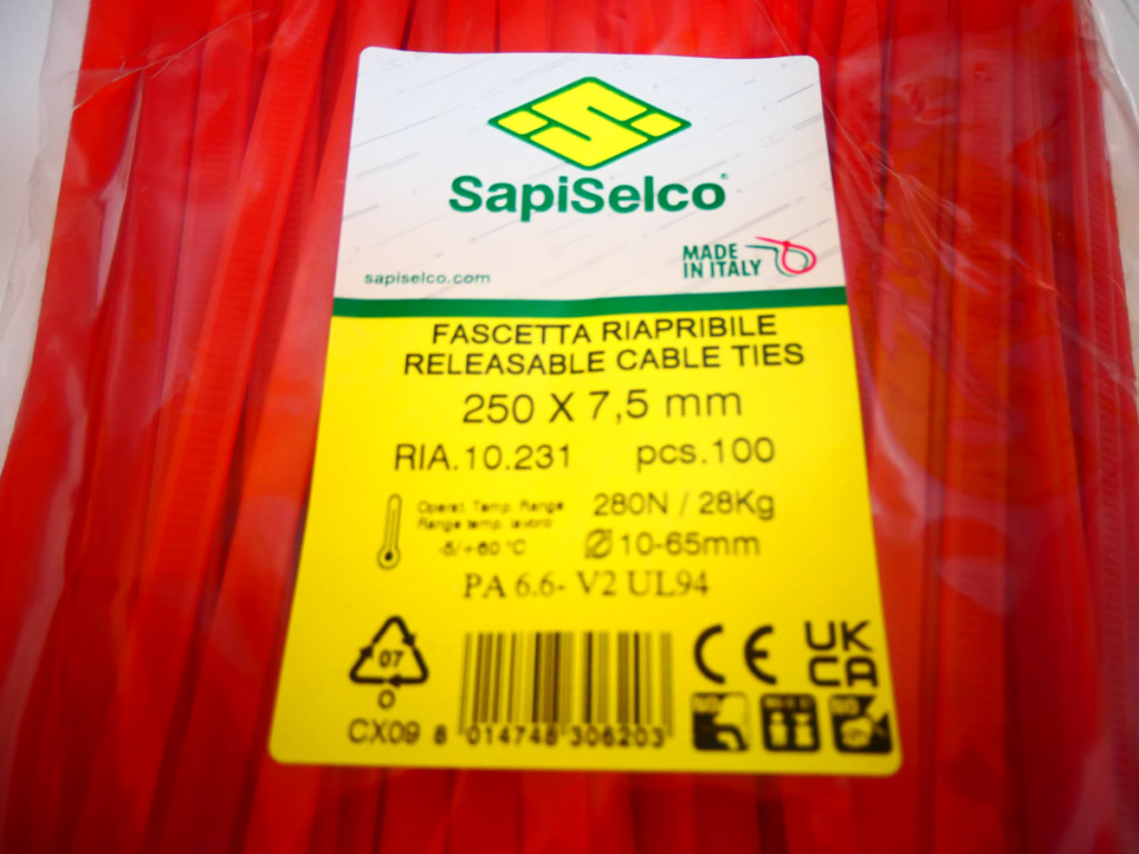 Re-openable red cable tie 250x7.5 - releasable zip tie (100 pcs/package) SapiSelco Click Tie [RIA.10.231]